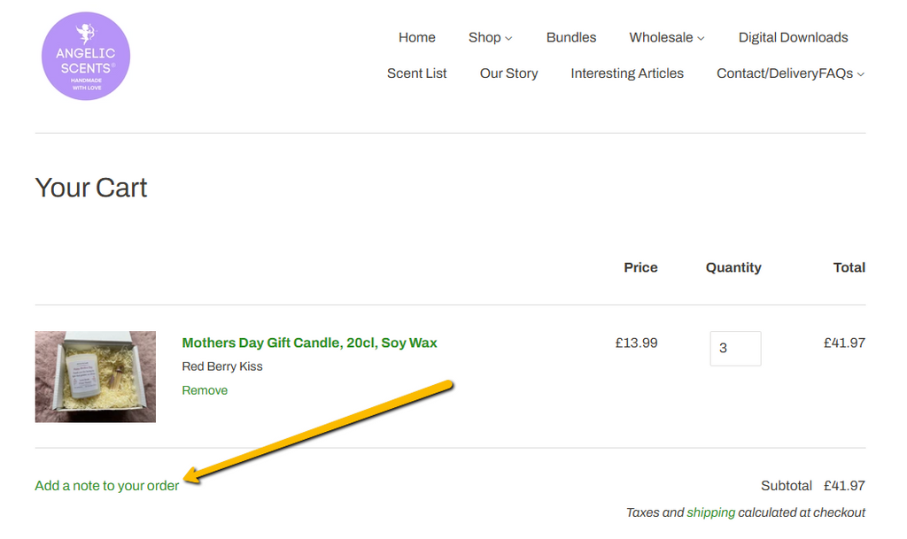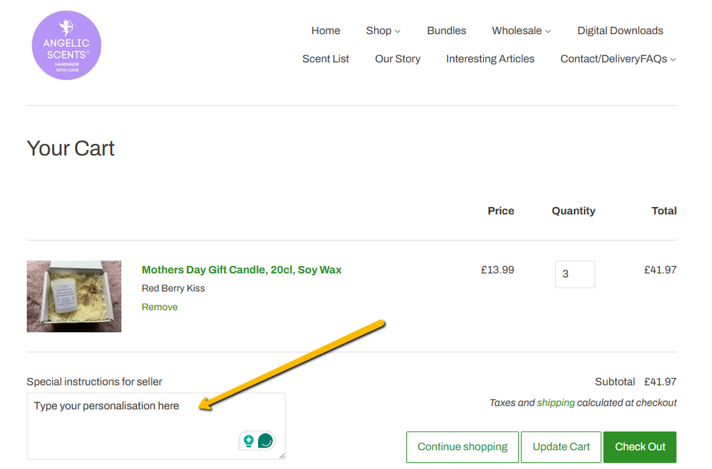 Add your name in the "Add a note to your order" text box once you have clicked Add to Cart. (see images)